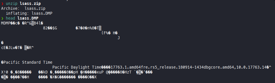 It appears to be a memory dump of lsass. This is useful, as we can now use pypykatz to retrieve hashes from the dump.