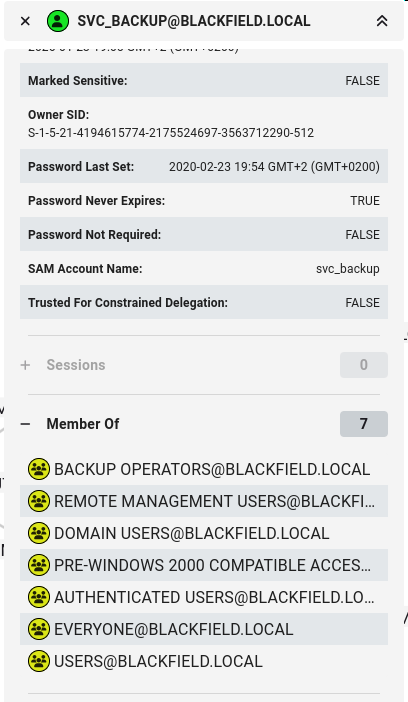 This is a big win. svc_backup is in the Backup Operators group, which means we can use it to get Domain Admin easily.